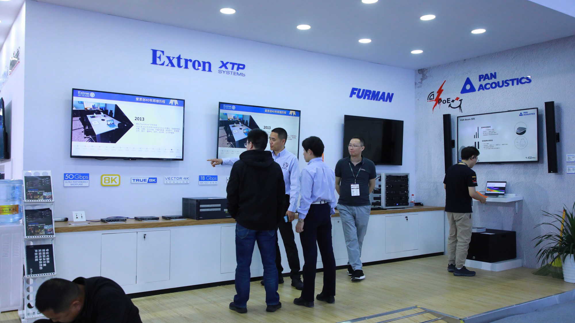易科作为专业音视频整体解决方案提供商,携公司代理及自主研发的12大品牌,包括Allen & Heath、Audinate、AUDIX、EAW、Extron、ezCloud、Furman、IPS、Pan Acousitcs、Powersoft、Symetrix、Visionary Solutions,以及公司倾力打造的“铁思”方案和E.I.E SOFTAVC软硬融合音视频解决方案参与了本次展会,吸引了来自世界各地的业内人士驻足参观。