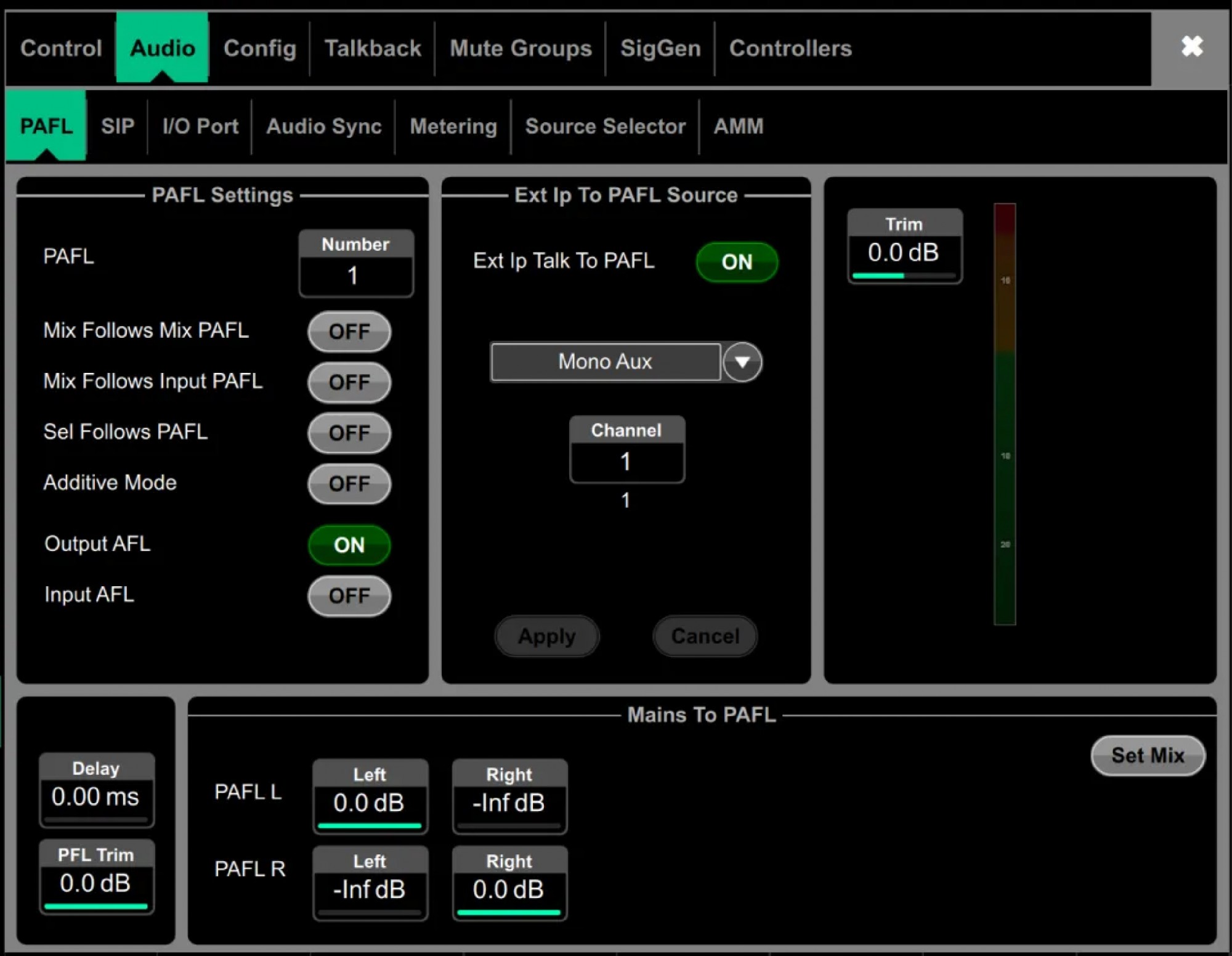 同时,在复杂的混音环境中,“Ext Ip Talk To PAFL”功能尤为出色,它巧妙地将乐手内通话筒信号整合至监听母线,使调音师即便在专注于其他通道时,也能清晰听到内通内容,确保与乐手的无缝沟通。这一创新设计不仅提升了工作效率,更为直播现场带来了前所未有的专业与流畅体验。
