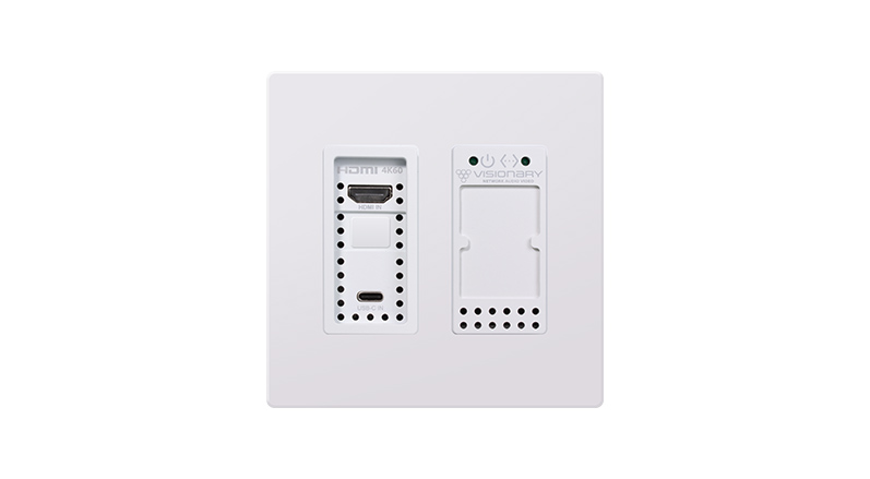 升级固定安装系统,选用Visionary推出的DuetE5-WP-C 4K60 4:4:4 AV-over-IP墙面板编码器——性能、可扩展性与简易性在此完美融合,仅需单根网络线缆即可实现。