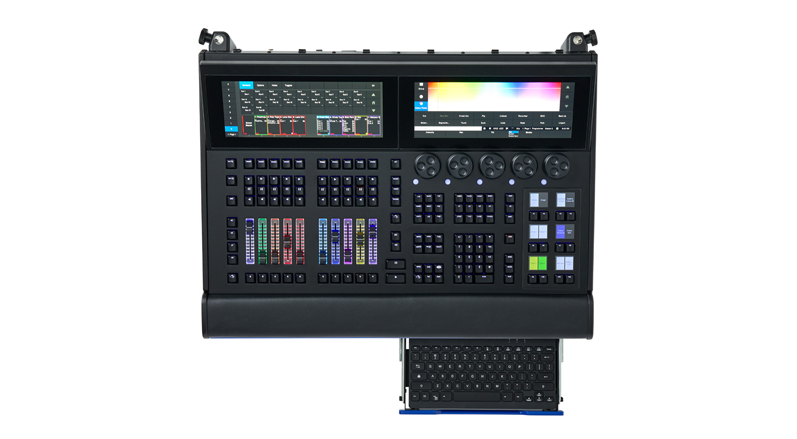 Stage Hog 控制台专为需要紧凑灵活解决方案的制作环境而设计。该设备采用无内置显示屏设计,集成了多项久经巡演考验的实用功能:配备 RGB 背光按键与电动推子、5 个带可分配滚轮按钮的高品质编码器、用户自定义键与功能键,以及双仪表盘多点触控显示屏。控制台内置带背光的字母键盘,巧妙收纳于可锁定抽屉中。