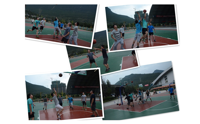 艰难的下山旅程后,成都与西安同事仍精力充沛,在附近体育馆进行了一场篮球友谊赛。